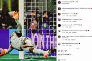 他也在赛后通过社媒晒出自己的多张扑救照,并配文:“哈!💥 永远佛砸米兰(米兰前进)❤️🖤”