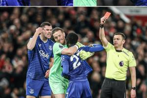 体育资讯11月25日讯 英超第12轮,埃弗顿1-0击败曼联,本场比赛盖耶的红牌创造名场面。