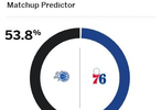 今日ESPN给出了本场胜率预测,魔术为53.8%,76人为46.2%。