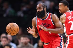 哈登场均出战36分钟,得到26分6.3篮板9助攻,三项命中率46/40/91%。
