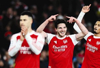 阿森纳队球员赖斯(中)赛后庆祝胜利。 新华社发主场以3比1战胜本赛季状态出色的拜仁慕尼黑队,阿森纳队豪取五连胜领跑欧冠联赛积分榜,再加上英超赛场斩获的九轮不败,“枪手”无疑成为近来势头最盛的欧洲五大联赛之师。