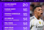 #奥林匹亚科斯3比4皇马# Squawka数据统计,姆巴佩是本赛季至今欧冠联赛中唯一一位创造20+次机会的球员。