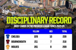 体育资讯12月1日讯 数据网站OPTA盘点了英超球队自23/24赛季以来吃牌榜,其中切尔西229黄10红,两项数据均为最多,具体榜单如下:
