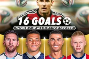 世界杯历史射手榜(*为现役球员):