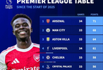 2025年至今英超积分榜