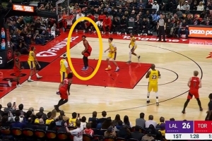 GIF-斯科蒂·巴恩斯篮下接球 先回头看一下拉拉维亚 然后扣空篮命中