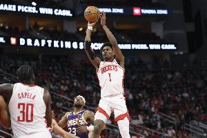 阿门场均17.4分7板5.1助2.7失误,真实命中率54.1%,三分命中率20.5%,罚球80%,正负值+9.1。
