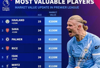 德转更新后英超球员身价TOP10: