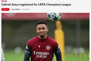 热苏斯取代小将道曼,将立即进入阿森纳欧足联A名单,因此这名前锋将能够参加当地时间周三晚进行的阿森纳客战布鲁日的比赛。