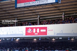 本场比赛桑德兰主场观众席上分的比分牌上并未展示出纽卡的队徽,而仅仅是以英文visitors(客队)替代。