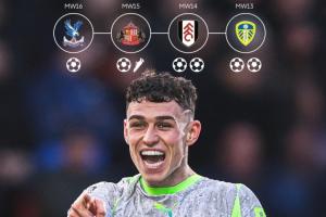 近4轮英超,福登一扫颓势展现炸裂状态,4轮6球1助仿佛重回23/24赛季那个无所不能的“太子登”。