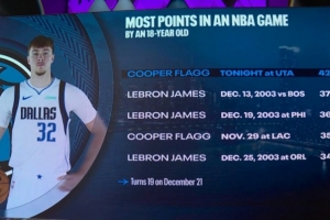 本场比赛,独行侠状元弗拉格表现出色,再次刷新生涯得分新高(此前35分),在42分钟的时间里,投篮27中13,三分球4中1,罚球20中15,空砍42分7篮板6助攻1抢断2盖帽的数据。