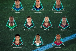 中场:科内(萨索洛)、埃克勒卡姆(乌迪内斯)、弗拉西奇(都灵)、盖塔诺(卡利亚里)