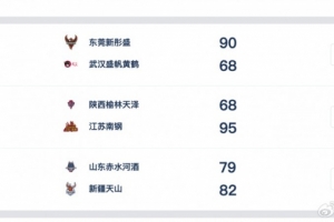 东莞新彤盛 90-68 武汉盛帆黄鹤,广东女篮四人得分上双,张明珠18分,陈明伶16分8篮板,杨舒予14分4助攻,科利尔10分6篮板。武汉女篮三人得分上双,丁奕可18分,佩顿15分10篮板,班克斯11分8篮板。