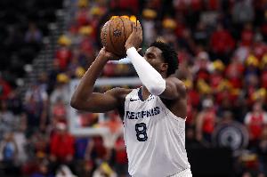 上半场,灰熊内线小贾伦表现出色,进攻高效篮板也很积极,在16分钟的时间里,投篮10中7,三分球1中1,罚球2中2,拿到17分7篮板1助攻1盖帽的数据。