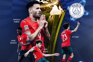 葡萄牙国家队官方发布海报,祝贺效力巴黎的葡萄牙籍球员若奥·内维斯、维蒂尼亚、努诺·门德斯和贡萨洛·拉莫斯随队夺冠,这也是他们今年夺得的第7个冠军,包括:法甲冠军、法国杯冠军、法国超级杯冠军、欧冠冠军、欧超杯冠军、洲际杯冠军以及欧国联冠军。