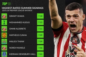 whoscored英超新援场均评分榜: