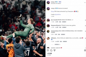 他也在今日通过社媒晒出自己被队友们抛上空中庆祝的照片,并配文:“历史性时刻。巴黎赢得了洲际杯冠军🔴🔵🏆感谢我的经纪公司。”