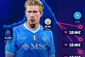 体育资讯12月19日讯 德国转会市场预热德布劳内最新身价,这位34岁的比利时中场身价确定下降。