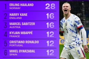 体育资讯11月20日讯 本届世欧预小组赛已经告一段落,squakwa也统计了本届赛事射正情况,哈兰德断崖领跑。