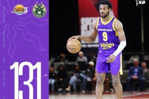 体育资讯12月22日讯 G联盟常规赛,南湾湖人主场131-119击败威斯康星鹿群队。