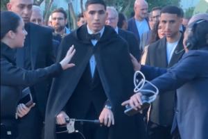 因为脚踝受伤,阿什拉夫前往颁奖典礼时带着助行器,他穿戴黑披风借着助行器行走,拍照和领奖时蹦蹦跳跳。