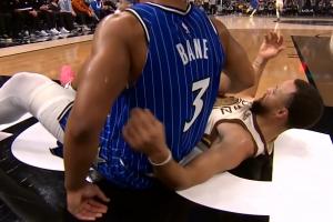 GIF-贝恩撞翻库里!没哨!回头魔术一个2+1!