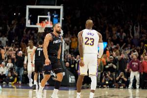 今天,ESPN预测本场比赛胜率,湖人45.8%,太阳54.2%。