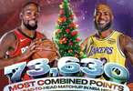 NBA官方:詹姆斯&杜兰特共73630分,圣诞大战历史上对决双方的最高合计得分