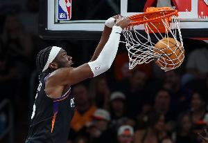 本场比赛,太阳中锋马威攻防两端表现出色,打了27分钟13投9中,罚球8中6拿到24分13篮板2助攻2抢断1盖帽,正负值+14。