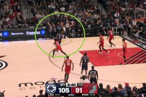GIF-暂停后,小卡被断,开拓者快攻两分打进