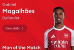最终经过英超官网球迷投票,加布里埃尔以41%的的得票率当选全场最佳球员。