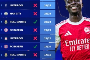 德转也盘点了此前9支赛季前7场欧冠全胜的球队最终战绩,其中仅23/24赛季的皇马、19/20赛季的拜仁最终夺冠,其余包括利物浦、曼城、巴萨、米兰等球队最终均无缘冠军。