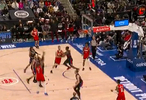 比赛的第四节,杜兰特运球连续变向急停跳投命中,已经砍下30分。
