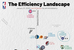 最近10场的攻防效率,湖人的攻击在中游,防守在下游。
