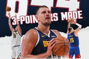 算上这4记三分,约基奇掘金生涯三分命中数来到844记,超越波特(843),来到队史第二位,仅次于穆雷(1181)。