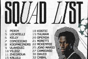 尤文欧冠大名单:弗拉霍维奇、伊尔迪兹、戴维在列